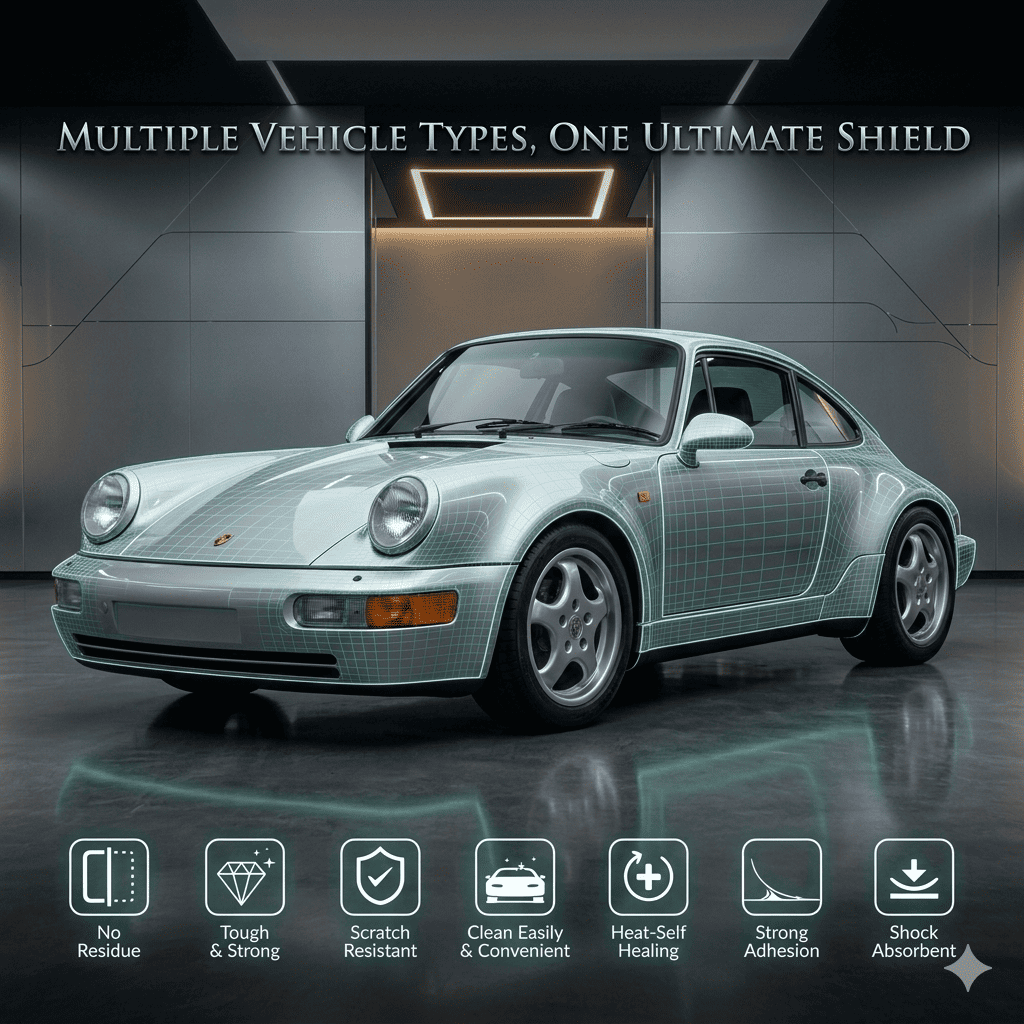 It is typically 6.5-8.5 mils thick, self-healing from minor scratches and swirl marks, and virtually invisible once installed- providing long-lasting paint protection.